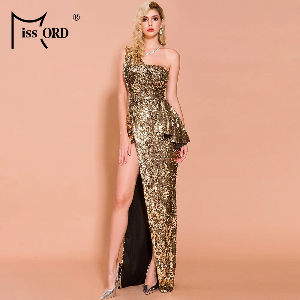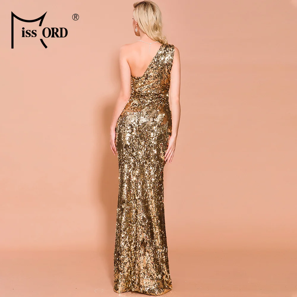 Free shipping Missord 2020 Women Sexy Off Shoulder Backless Dresses Female Elegant High Split Sequin Maxi Dress F