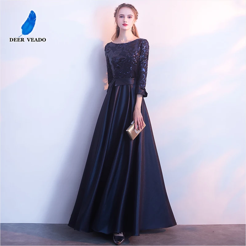 Good Product DEERVEADO A Line Sequin Golden Evening Dress Long Prom Party Dresses Evening Gown Formal Dress Wome